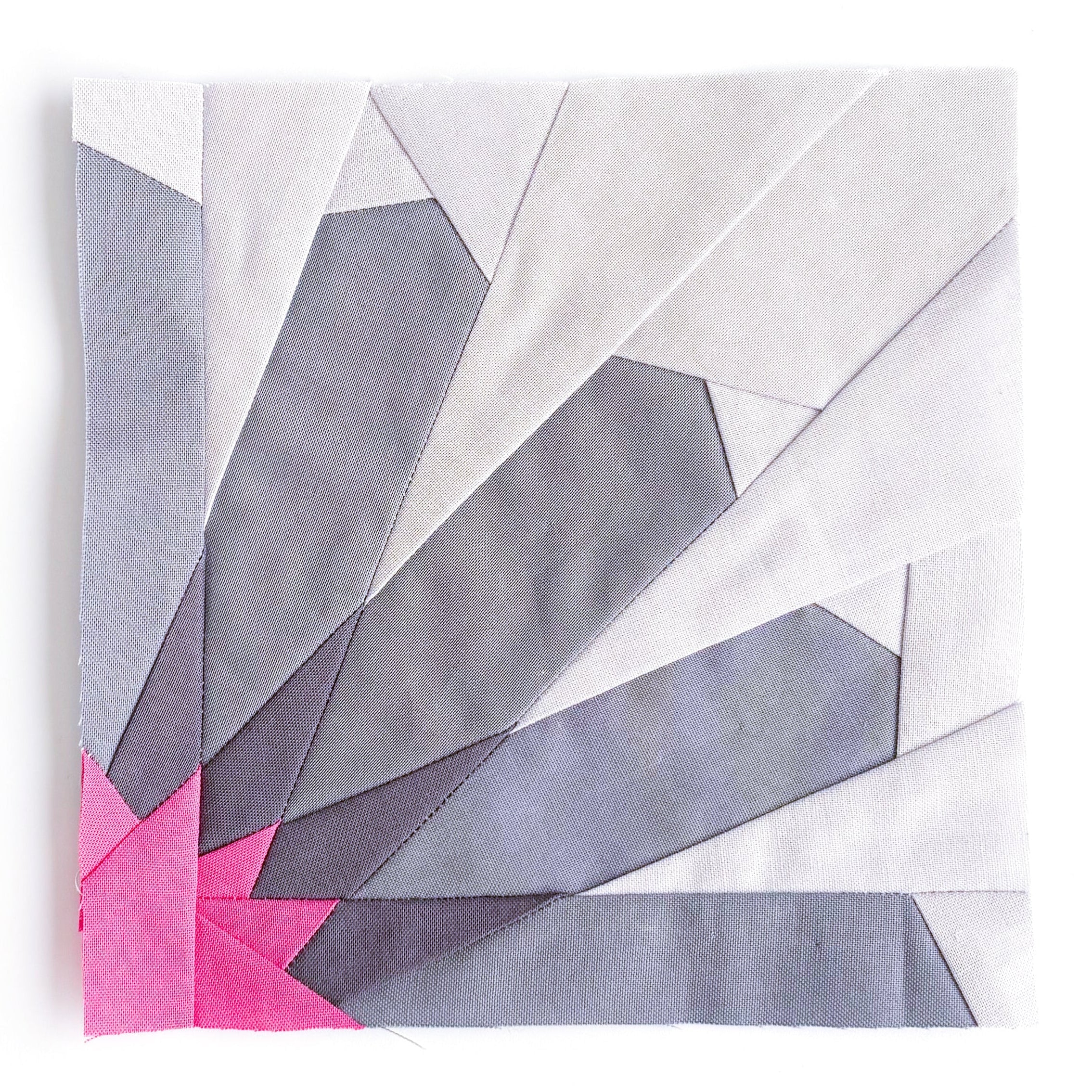Subscribe to our newsletter to get access to this geometric flower FPP block. Unfinished block size is 6.5" x 6.5" with a bonus 15.5" x 15.5" block!